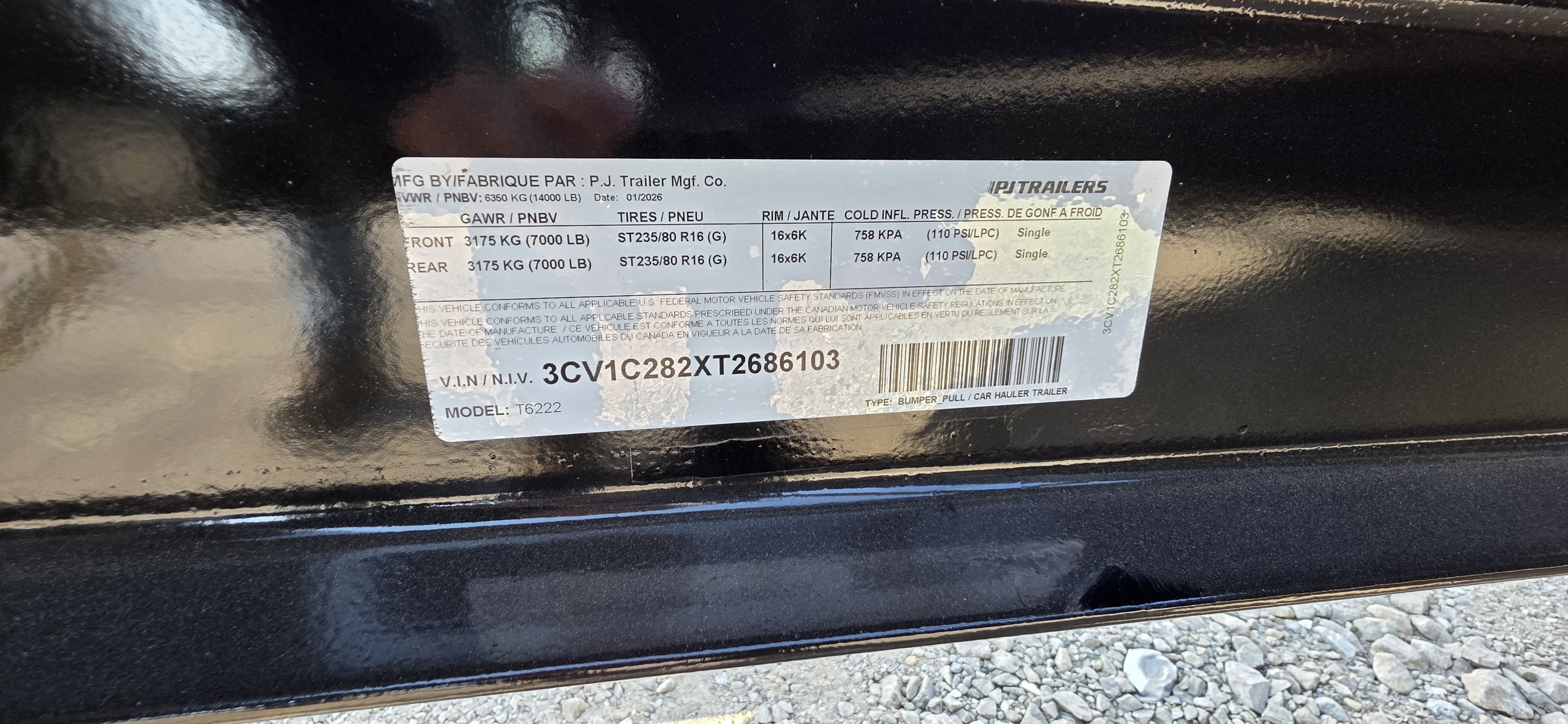 2026 PJ T6 22'x83" Channel Tilt Equipment Trailer (2686103)