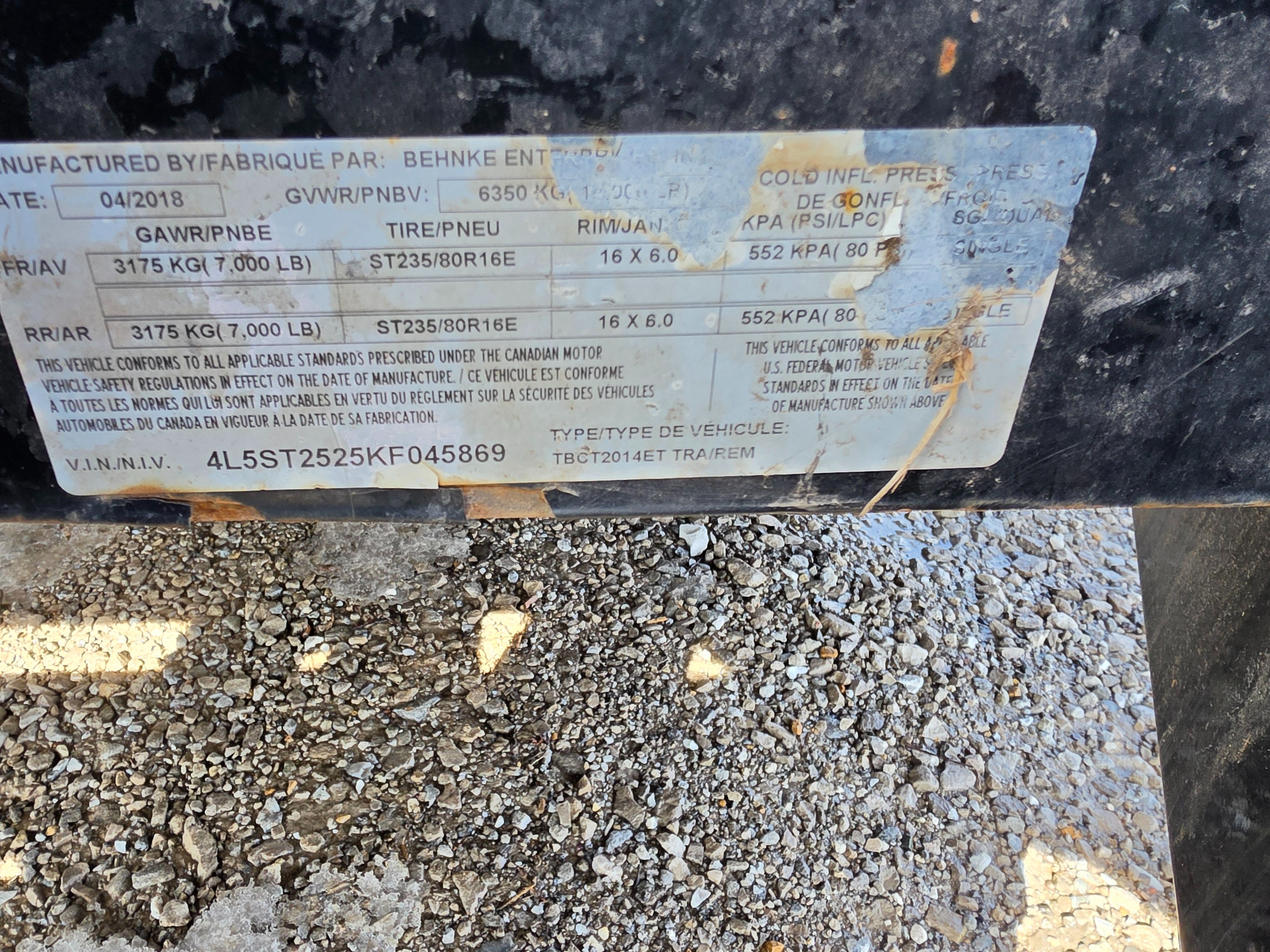 2019 Behnke 20' Tilt trailer (045869)