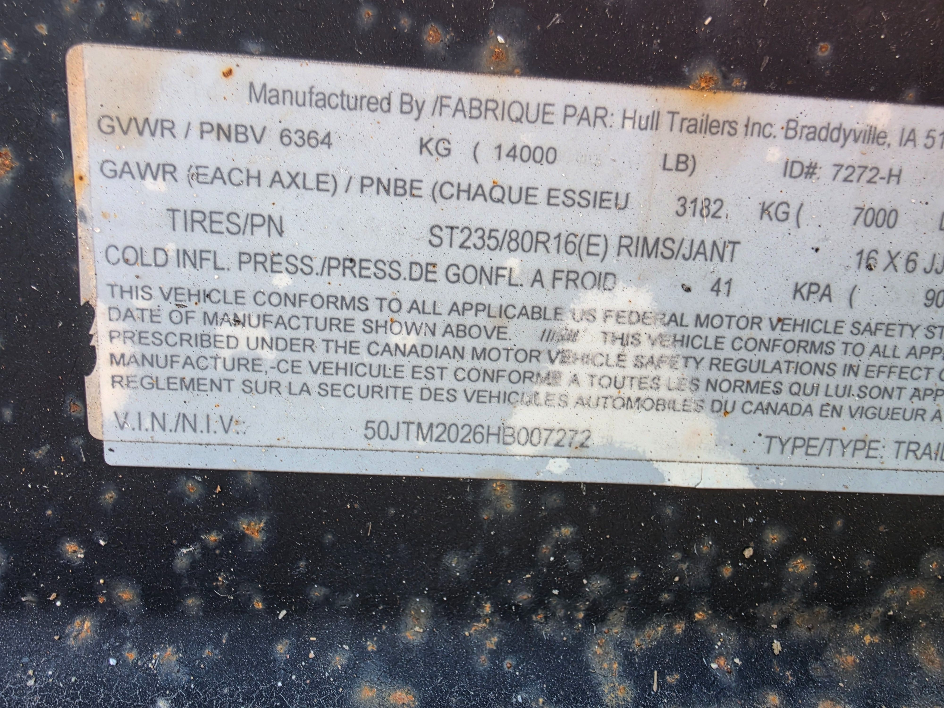 2017 Hull TM 20 – 14K Tilt Trailer (007272)